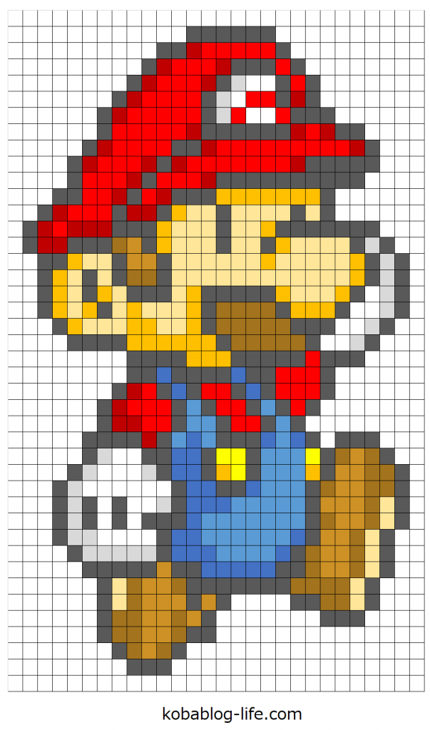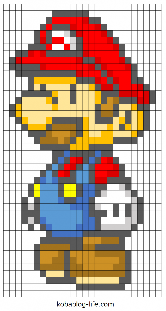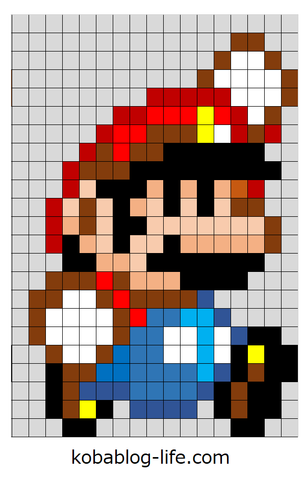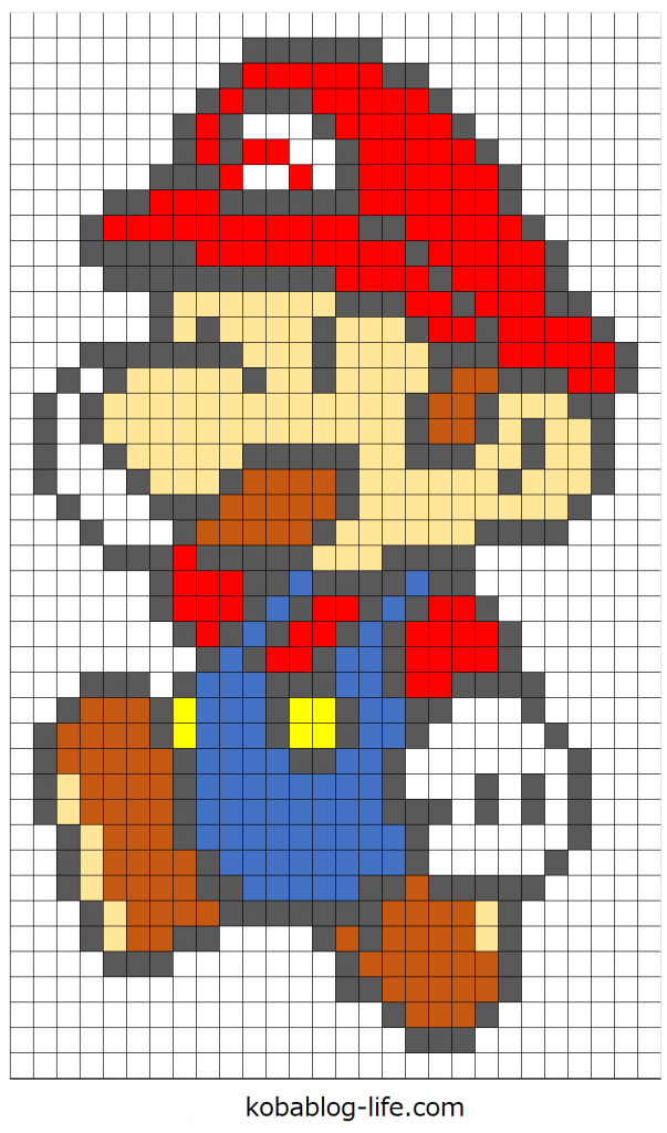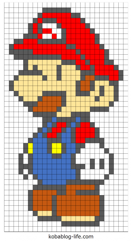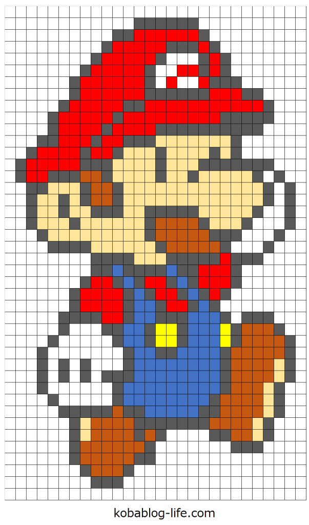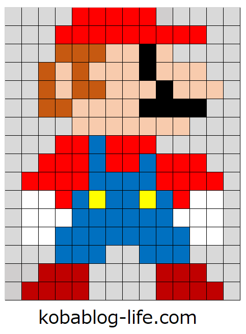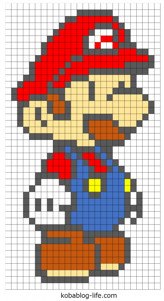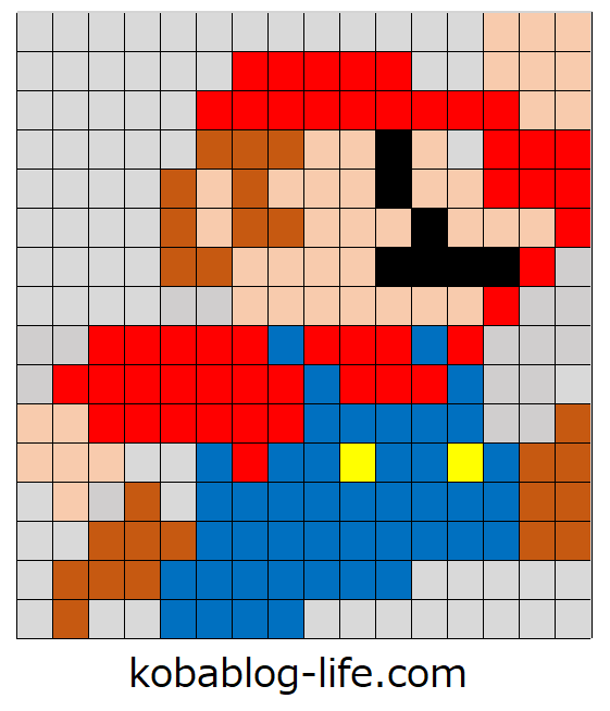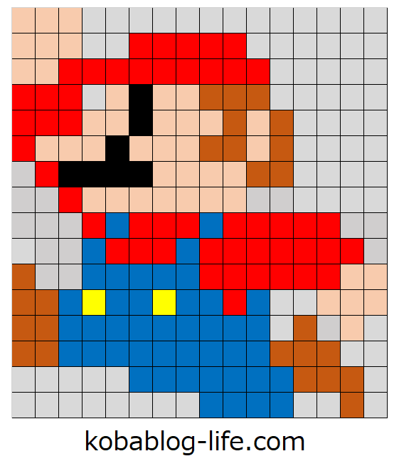 スーパーマリオブラザーズのマリオの図案を紹介しました。