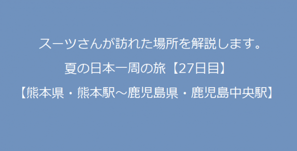 【スーツ旅行】夏休み日本一周の旅のルートを解説【熊本県・熊本駅~鹿児島県・鹿児島中央駅】【27日目】