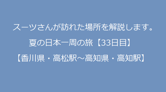【スーツ旅行】夏休み日本一周の旅のルートを解説【香川県・高松駅~高知県・高知駅】【33日目】
