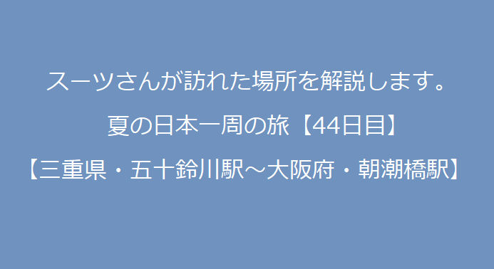 【スーツ旅行】夏休み日本一周の旅のルートを解説【三重県・五十鈴川駅~大阪府・朝潮橋駅】【44日目】