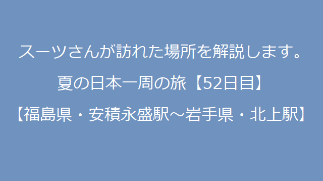 夏休み日本一周の旅【52日目】は、福島県・安積永盛駅~岩手県・北上駅まで移動しました。