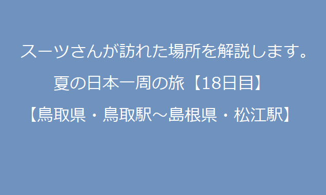 【スーツ旅行】夏休み日本一周の旅のルートを解説【鳥取県・鳥取駅~島根県・松江駅】【18日目】